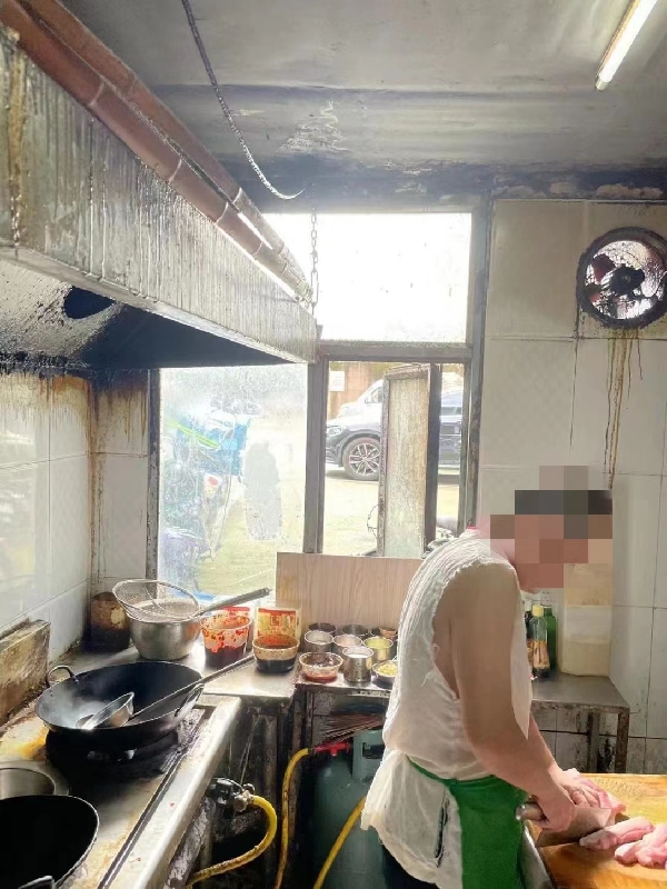 上榜理由:后堂環(huán)境衛(wèi)生差,從業(yè)人員未穿戴潔凈的工作衣(帽)及口罩,三防不到位(紗窗未關(guān)閉)。