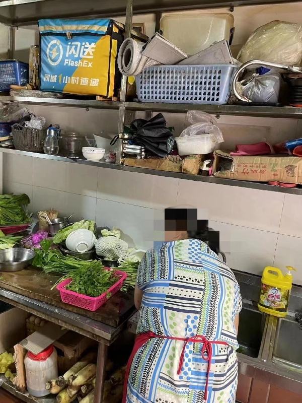 上榜理由:后堂環(huán)境衛(wèi)生差,從業(yè)人員未穿戴潔凈的工作衣(帽)及口罩。