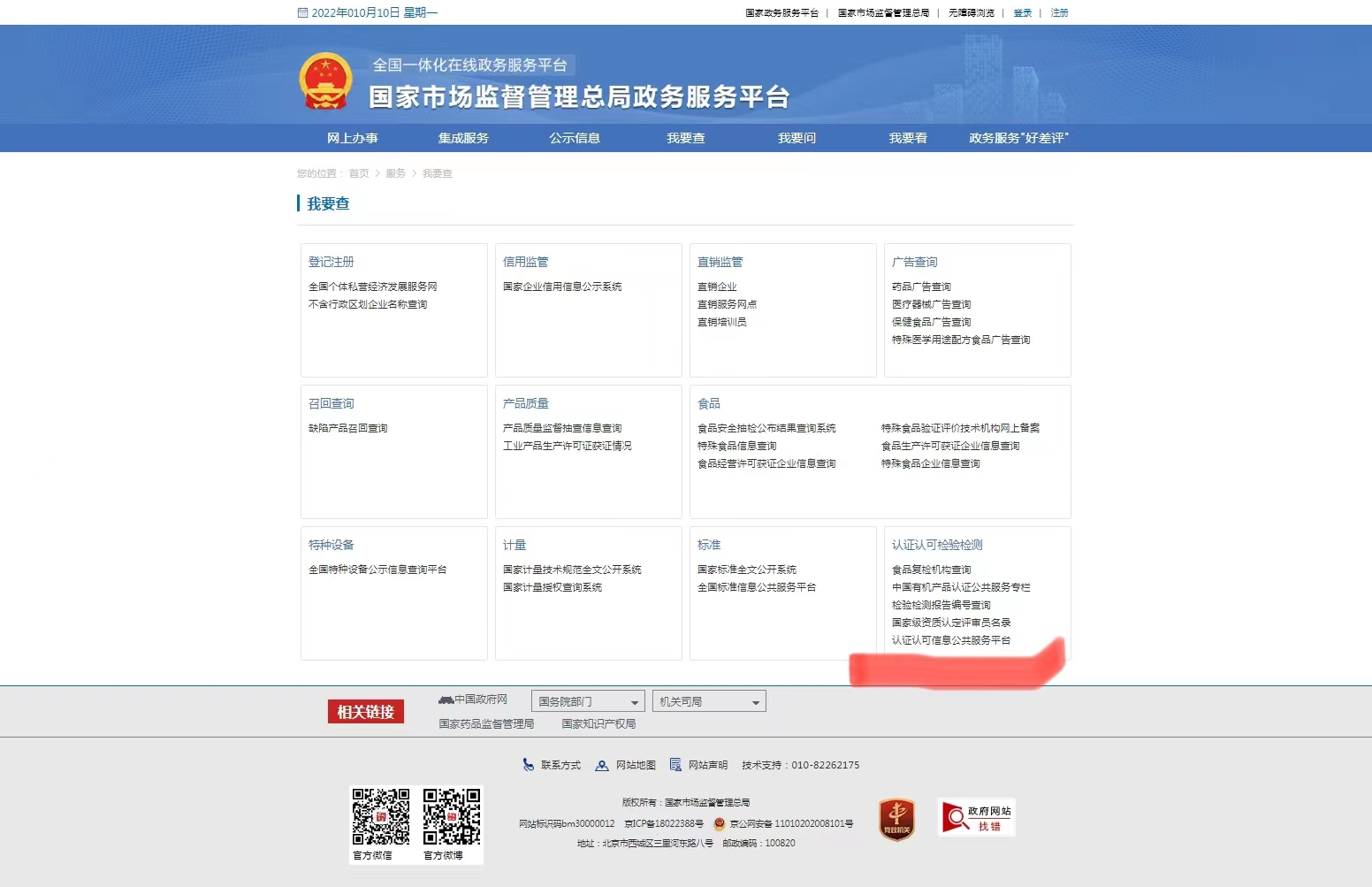 請前往“國家市場監(jiān)督管理總局”(https://www.samr.gov.cn/)官方網(wǎng)站進行查詢。???方式一:進入主頁,點擊【服務】欄→【我要查】→【認證認可檢驗檢測】→【認證認可信息公共服務平臺】進行電動自行車3C認證查詢。???方式二:直接輸入網(wǎng)址“cx.cnca.cn/CertECloud/index/index/page?currentPosition=”進入【認證認可信息公共服務平臺】進行電動自行車3C認證查詢。