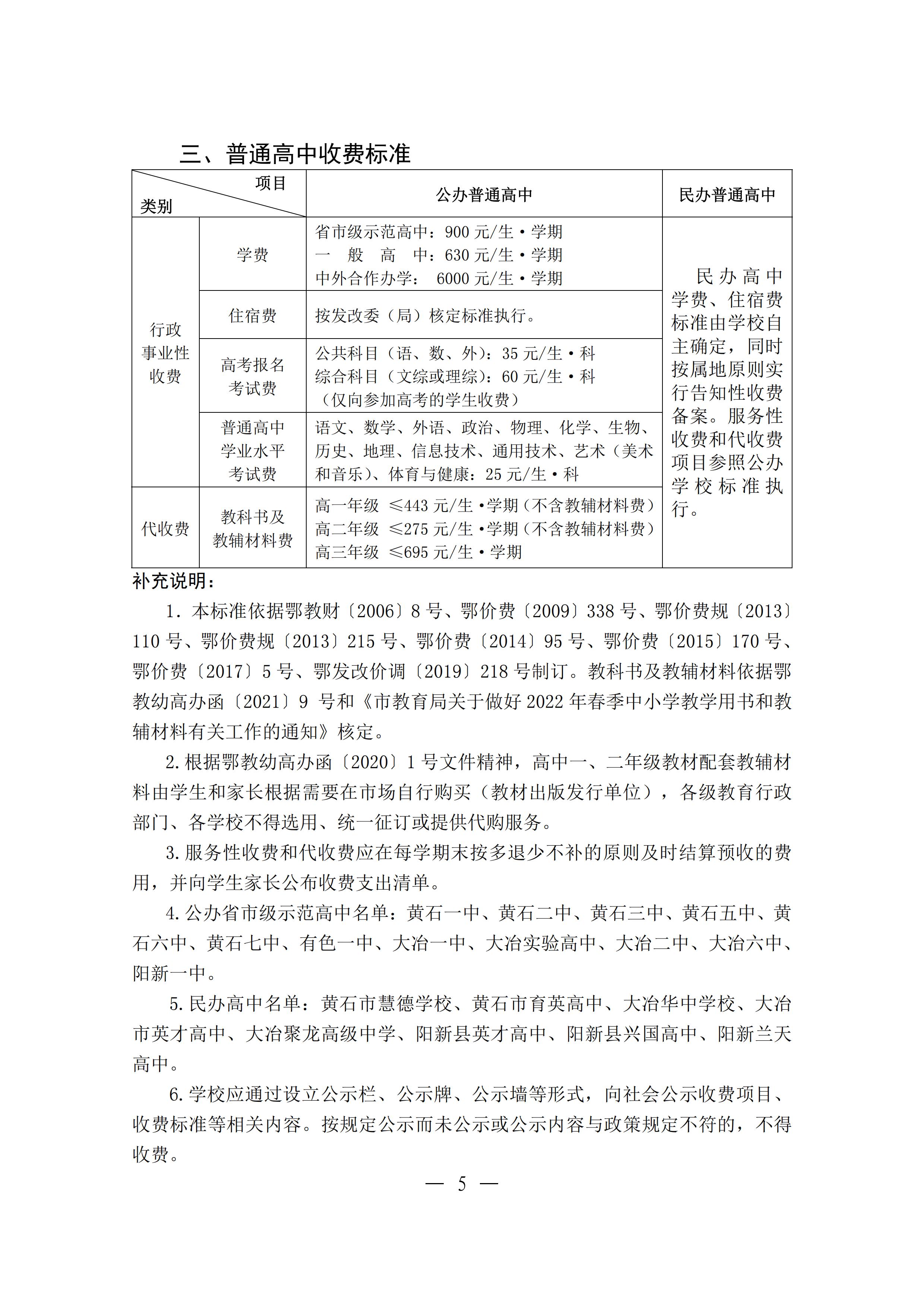 2022 年春季中小學(中職學校、幼兒園)收費標準