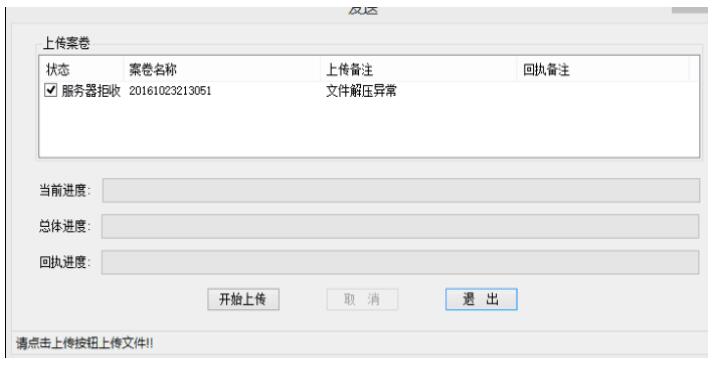 ??1.1.6.提交案卷時(shí),提示“服務(wù)器拒收,文件解壓異?!?,如下: