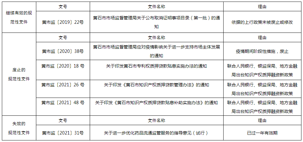 根據《黃石市司法局關于在全市開展規范性文件清理工作的通知》的要求,我局對2022年12月31日前以我局名義發布的規范性文件進行了全面系統的清理,共清理出繼續有效的規范性文件1件,廢止的規范性文件4件、失效的規范性文件1件,現將清理結果予以公布。凡宣布失效的規范性文件,自本通知發布之日起不再執行。