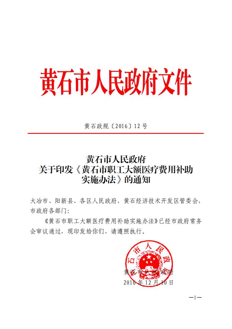 黃石市職工大額醫療費用補助實施辦法