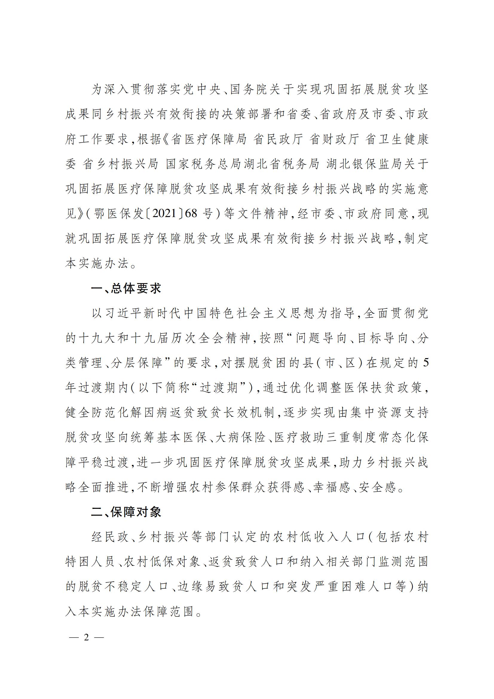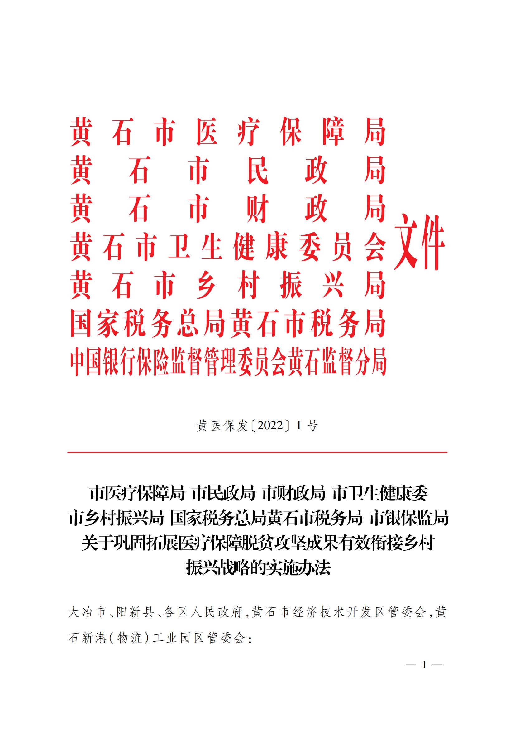 黃石市關于鞏固拓展醫療保障脫貧攻堅成果有效銜接鄉村振興戰略的實施辦法
